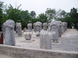Itinerary D1: Picked up by your English tour guide and private vehicle to Qian Mausoleum, The Tang Dynasty (618-907) is a truly fascinating period of Chinese history, not only for its high culture but also the personalities that left their mark on the epoch. Not least of these were Emperor Gao Zong and his Empress Wuzetian. It is not surprising that they should have had impressive burials and that in view of her powerful and dominating character that the Empress should have shared her late husband's tomb. This is the only instance of a mausoleum shared in this way and of course, Wu Zetian was the only woman to have ruled China.